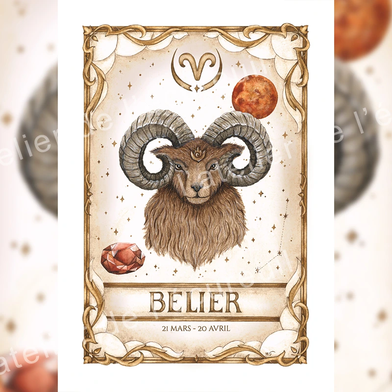 Il y a des signes qui foncent là où les autres hésitent, qui osent là où les autres attendent. Les Bélier sont de ceux-là — et cette affiche astrologie Bélier a été pensée pour eux.
