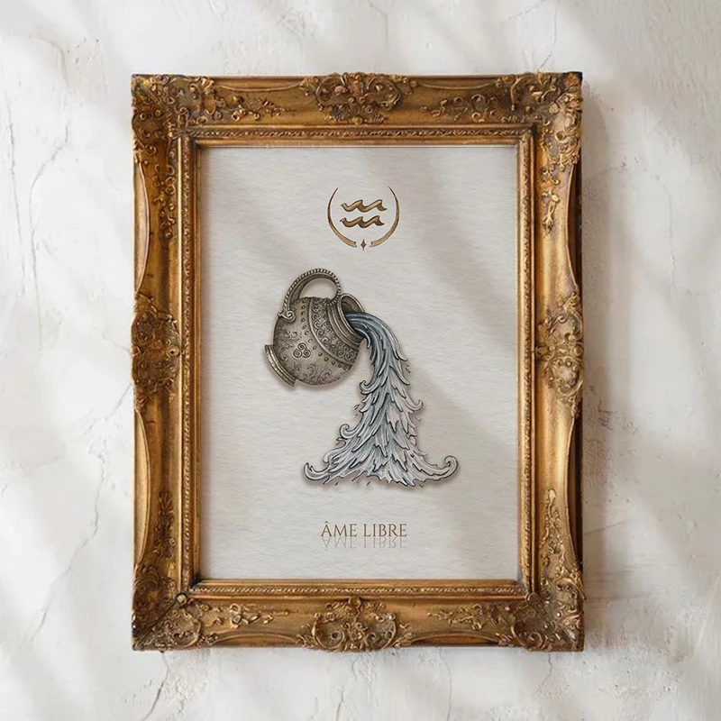 Il y a des signes qui n’entrent dans aucune case, qui avancent à leur rythme avec cette liberté tranquille qui fait leur charme. Les Verseau sont de ceux-là — et cette affiche zodiaque Verseau a été pensée pour eux.
