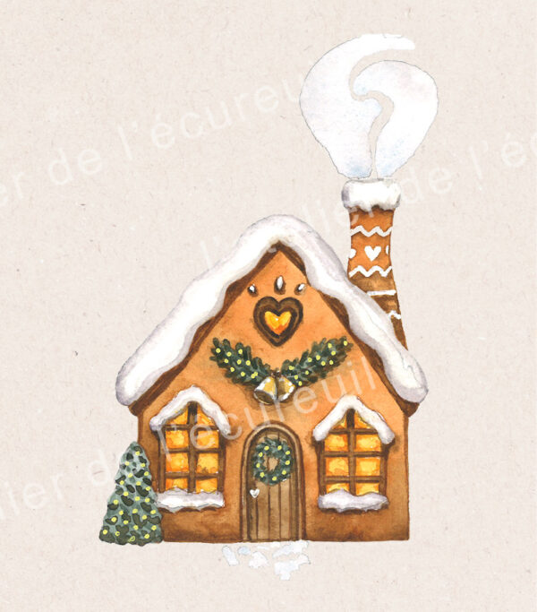Une adorable maison en pain d’épices enneigée, à offrir ou à afficher, avec ou sans enveloppe selon vos envies.