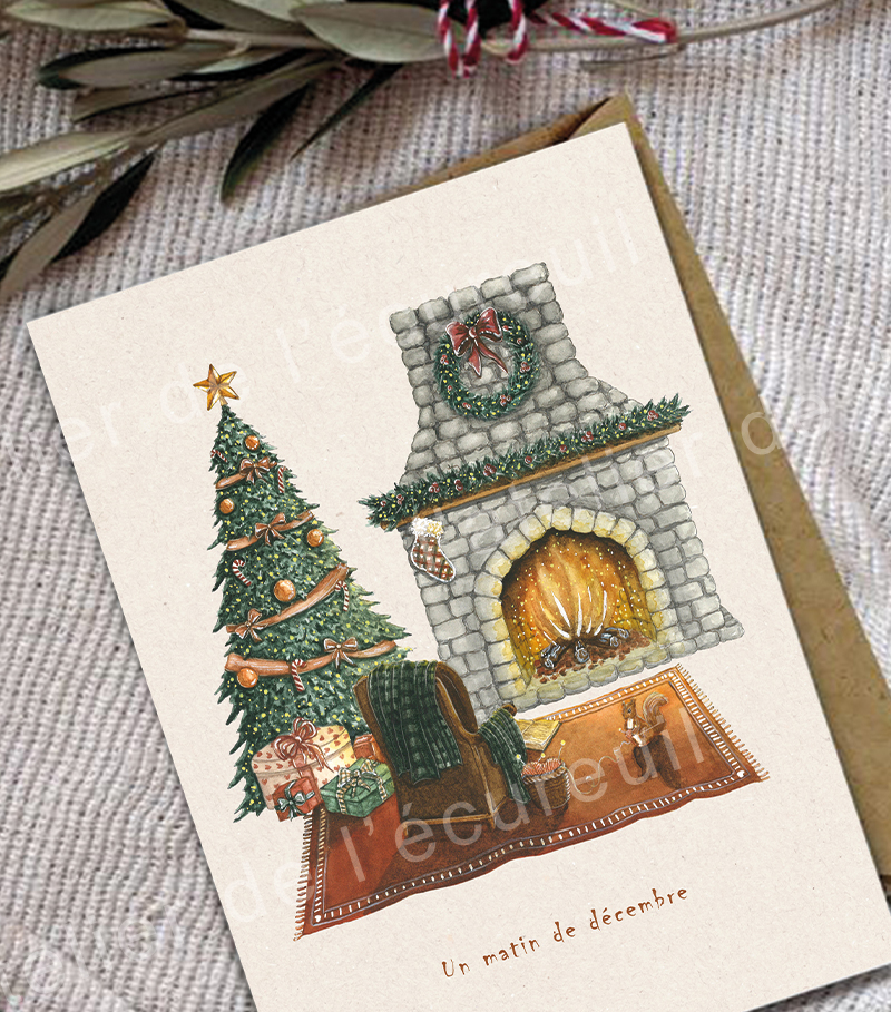Plongez dans la magie des fêtes avec “Un matin de décembre”, une illustration chaleureuse qui capture toute la douceur d’un intérieur cosy pendant la saison de Noël.